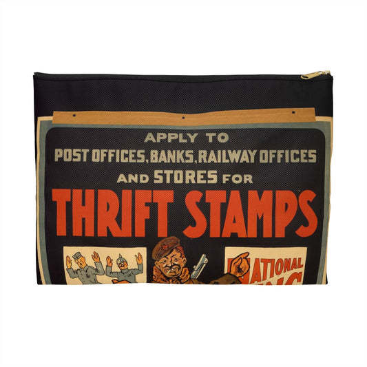 Thrift stamps. We licked them at the front, you lick them at the back Large Organizer Pouch with Black Zipper