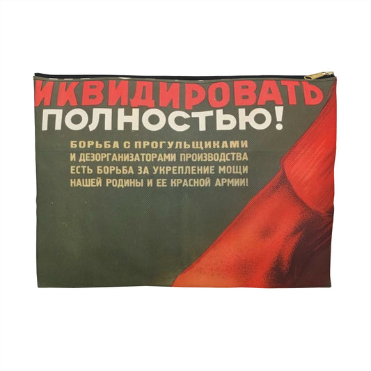 1941. Прогулы ликвидировать полностью!, Art Deco Poster Large Organizer Pouch with Black Zipper