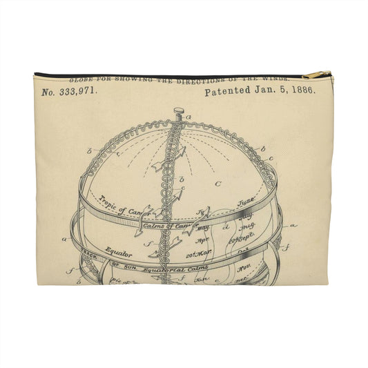Patent Drawing of Engine - Drawing of a Globe for Showing Direction of the Winds Public domain image Large Organizer Pouch with Black Zipper