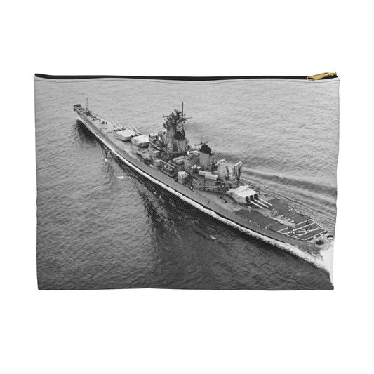 An elevated port quarter view of the battleship USS IOWA (BB 61) underway during sea trials Large Organizer Pouch with Black Zipper