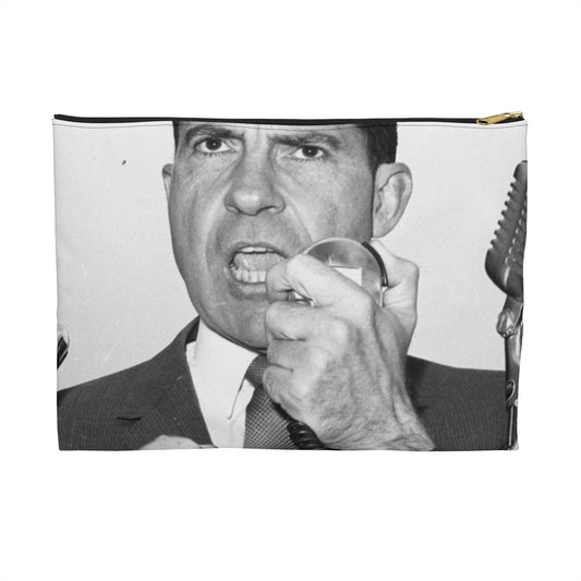 Richard Nixon clinches his fist as he addresses his first audience in Long Island, New York Large Organizer Pouch with Black Zipper