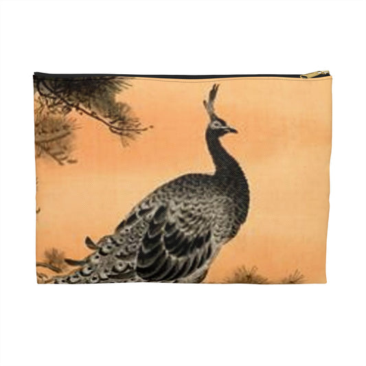Koson - peacock-and-hen, Ohara Koson Large Organizer Pouch with Black Zipper