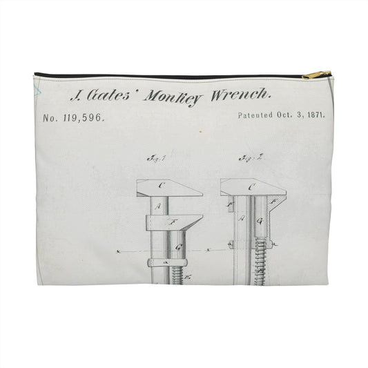 Patent Drawing of Engine - for J. Gates' Monkey Wrench Public domain image Large Organizer Pouch with Black Zipper