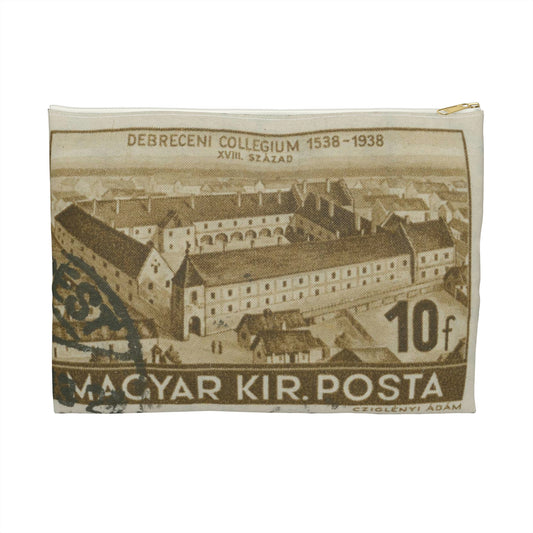 Frimärke ur Gösta Bodmans filatelistiska motivsamling, påbörjad 1950.Frimärke från Ungern, 1938. Motiv av Ungerns Universitet i Debreczen på 1700-talet. "400-årsminne: 1538-1938". Large Organizer Pouch with Black Zipper