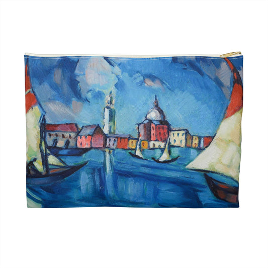 Magi veneetsia - A painting of boats in a harbor with buildings in the background Large Organizer Pouch with Black Zipper