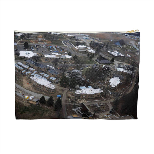 An aerial view of the Muscatatuck Urban Training Center Large Organizer Pouch with Black Zipper
