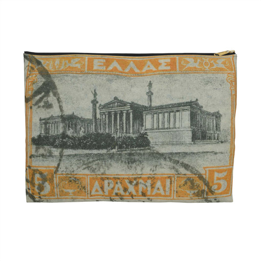 Frimärke ur Gösta Bodmans filatelistiska motivsamling, påbörjad 1950.Frimärke från Grekland, 1927. Motiv av Akademibyggnaden i Athén. Large Organizer Pouch with Black Zipper