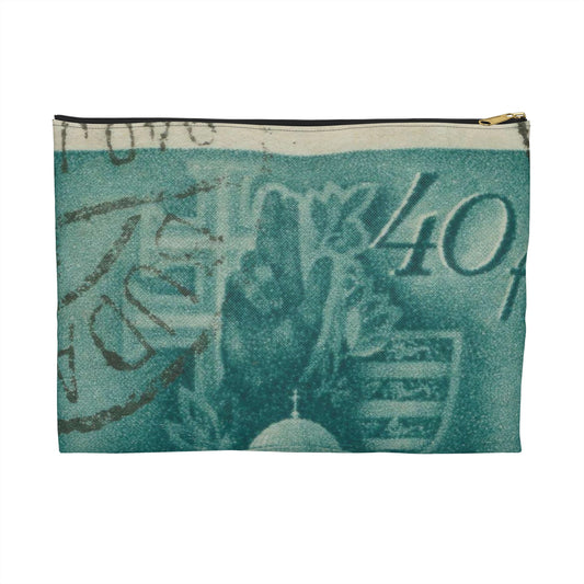 Frimärke ur Gösta Bodmans filatelistiska motivsamling, påbörjad 1950.Frimärke från Ungern, 1939. Motiv av Basilikan i Eszergom. Large Organizer Pouch with Black Zipper