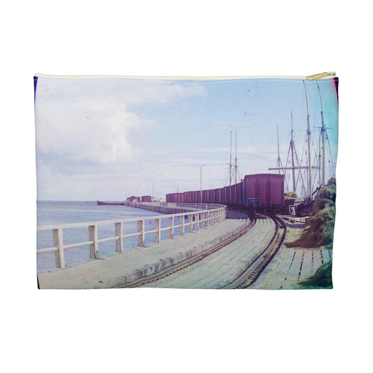 Sorochya Bay. Railroad dam in the Soroka inlet. Arkhangelsk Province, Russia. Large Organizer Pouch with Black Zipper
