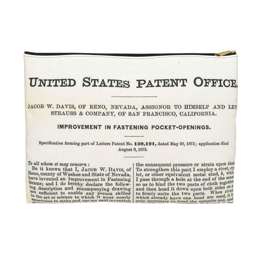 Patent Case File No. 139,121, Improvement in Fastening Pocket Openings, Inventor- Jacob W. Davis - DPLA - afb017b06366ded5b3d9735cb413b735 (page 29) Large Organizer Pouch with Black Zipper