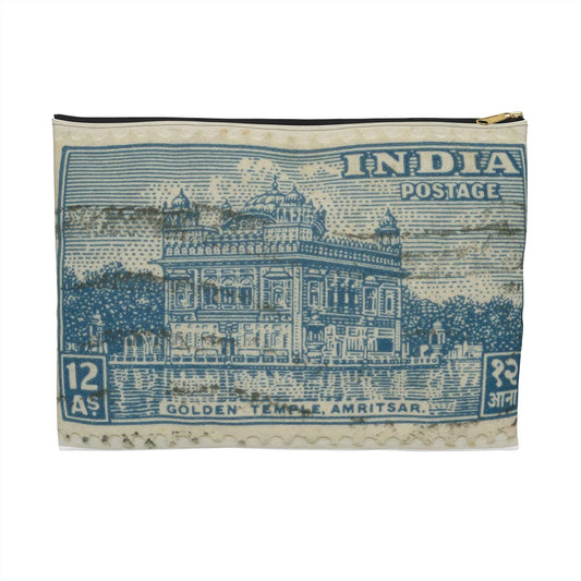 Frimärke ur Gösta Bodmans filatelistiska motivsamling, påbörjad 1950.Frimärke från Indien, 1949. Motiv av Det Gyllene Templet i Amritsar. Large Organizer Pouch with Black Zipper
