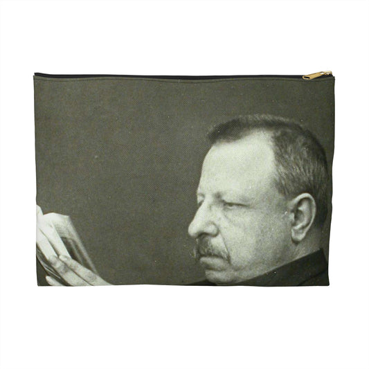 B.Croce, Italy - A black and white photo of a man reading a book Large Organizer Pouch with Black Zipper