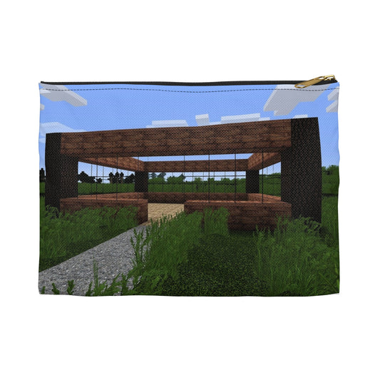 A bench in the middle of a field. Minecraft video game sky. Large Organizer Pouch with Black Zipper