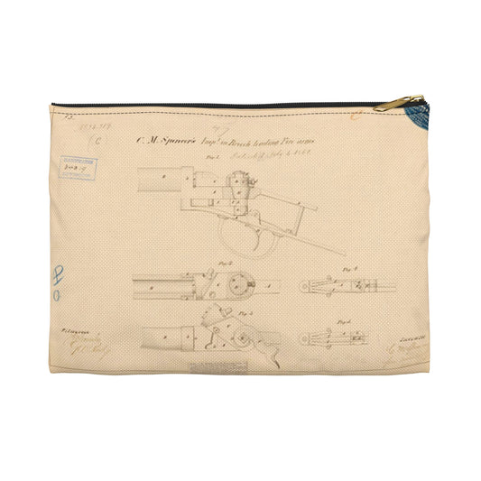 Patent Drawing of Engine - Drawing of Improvements in Breech Loading Fire Arms Public domain image Large Organizer Pouch with Black Zipper
