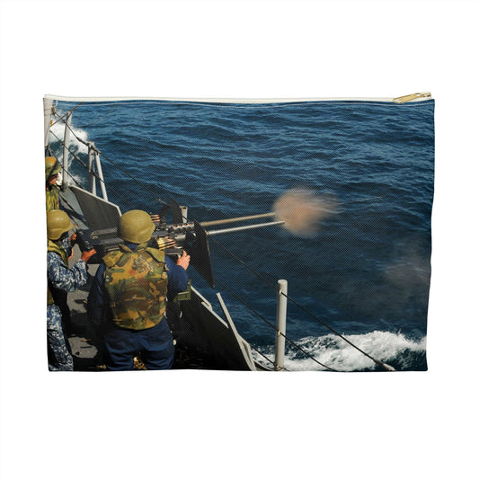 US Navy 110514-N-YM590-214 Gunner's Mate 2nd Class Charles H. Talbert fires a .50-caliber machine gun during a crew-served weapons certification ex Large Organizer Pouch with Black Zipper