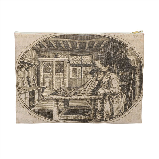 Fancy dress (Travestissement d'aprés Longhi - Robe de damas galonnée de blanc sur laquelle on jettera une baiite de taffetas noir et de dentelle) (CBL WEp 0847) Large Organizer Pouch with Black Zipper