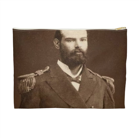 Foto A.Prat - A black and white photo of a man in uniform Large Organizer Pouch with Black Zipper