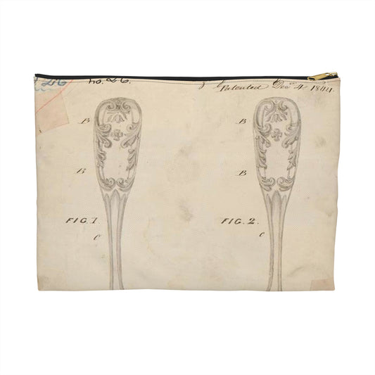 Patent drawing - Drawing of Design for Silver Forks Public domain image Large Organizer Pouch with Black Zipper