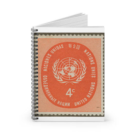 Frimärke ur Gösta Bodmans filatelistiska motivsamling, påbörjad 1950.Frimärke från Nations Unies 1958. Motiv av F. N.- märket. Spiral Bound Ruled Notebook with Printed Cover