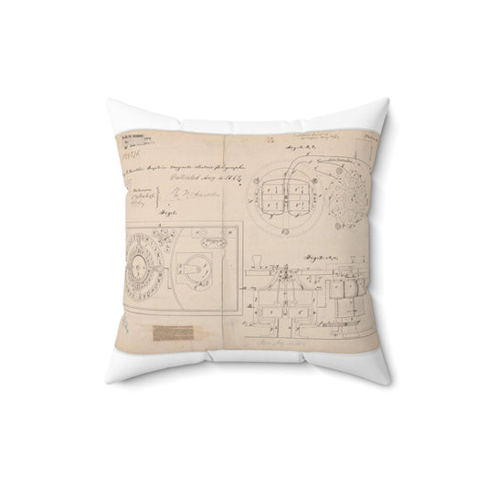 Patent drawing - Drawing of Improvements in Magneto-electric Telegraphs Public domain image Decorative Accent Square Pillow