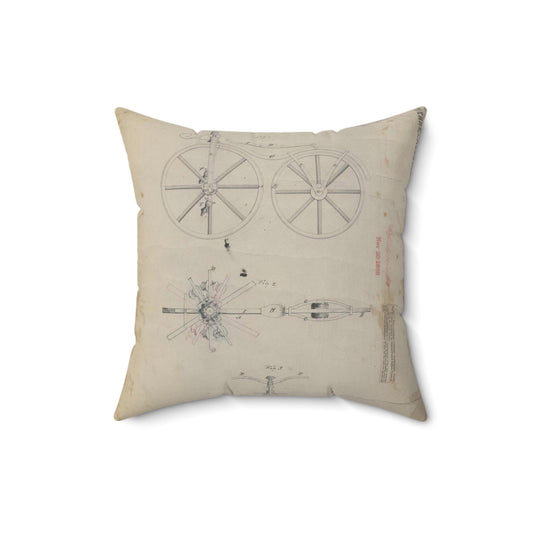 Patent drawing - for Pierre Lallement's Improvement in Velocipedes Public domain image Decorative Accent Square Pillow
