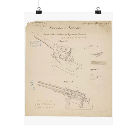 Patent drawing - Drawing of Improvements in Breech-Loading Repeating Cannon Public domain image High Quality Matte Wall Art Poster for Home, Office, Classroom