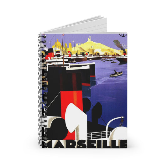 Marseille. Vintage Travel Poster. Spiral Bound Ruled Notebook with Printed Cover
