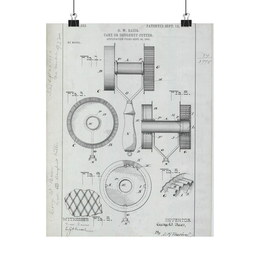 Patent Drawing of Engine - for G. W. Baier's Cake or Doughnut Cutter Public domain image High Quality Matte Wall Art Poster for Home, Office, Classroom