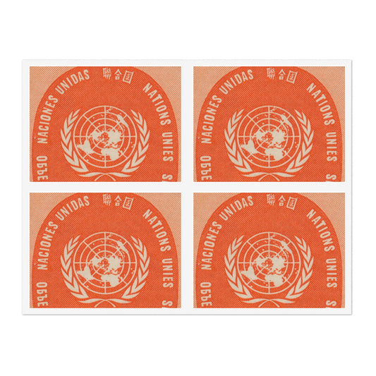 Frimärke ur Gösta Bodmans filatelistiska motivsamling, påbörjad 1950.Frimärke från Nations Unies 1958. Motiv av F. N.- märket. Laminated UV Protective Vinyl Stickers