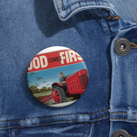 FOOD Comes FIRST - Public domain propaganda poster Pin Buttons with Crisp Design