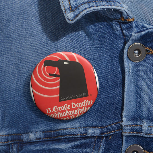 13 Grosse deutsche Rundfunkausstellung und Volkssender, Berlin 1936 / Riemer. Pin Buttons with Crisp Design