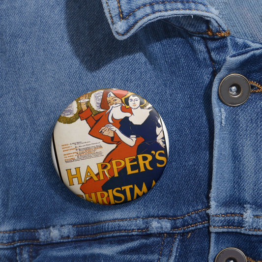 Edward Penfield - Harper's [for] Christmas, Art Nouveau Poster Pin Buttons with Crisp Design