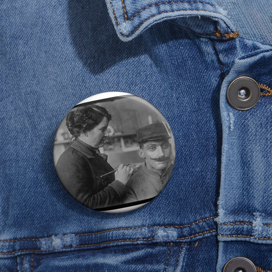 Mrs. Anna Coleman Ladd and Mr Caudron. Mrs. A. Coleman Ladd working on portrait mask Pin Buttons with Crisp Design