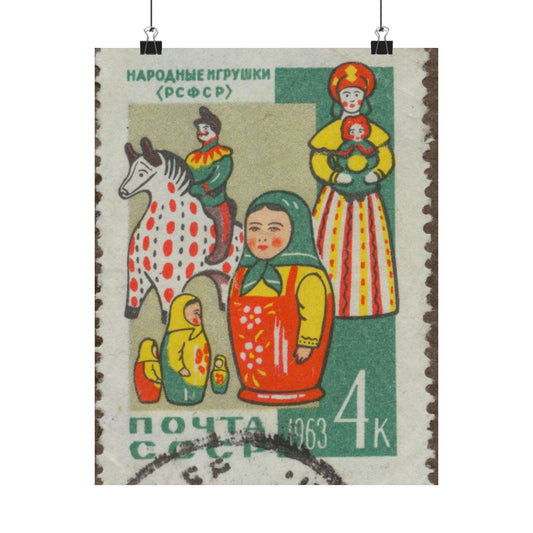 Frimärke ur Gösta Bodmans filatelistiska motivsamling, påbörjad 1950.Frimärke från Ryssland. Motiv av ryska allmogeleksaker. High Quality Matte Wall Art Poster for Home, Office, Classroom