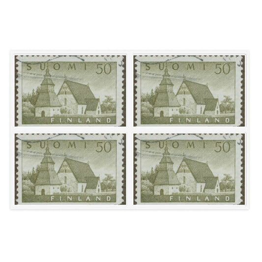 Frimärke ur Gösta Bodmans filatelistiska motivsamling, påbörjad 1950.Frimärke från Finland, 1957. Motiv av Lammi Kyrka med stigport och klockstapel. Laminated UV Protective Vinyl Stickers