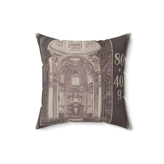 Frimärke ur Gösta Bodmans filatelistiska motivsamling, påbörjad 1950.Frimärke från Österrike, 1948. Motiv av Salzburgerdomen. "Serie till förmån för katedralens restauration". Decorative Accent Square Pillow