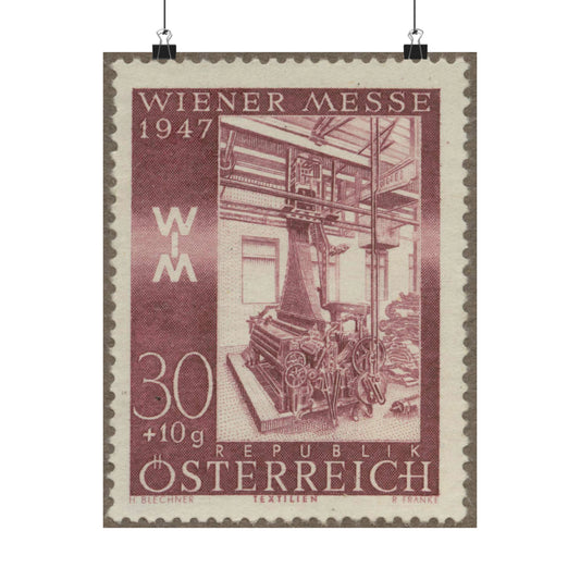 Frimärke ur Gösta Bodmans filatelistiska motivsamling, påbörjad 1950.Frimärke från Österrike, 1947. Motiv av jacquardvävstol i Österrike 1947. "Wienermässan 1947" High Quality Matte Wall Art Poster for Home, Office, Classroom