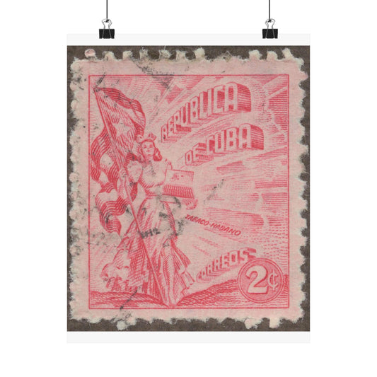 Frimärke ur Gösta Bodmans filatelistiska motivsamling, påbörjad 1950.Frimärke från Cuba, 1948. Motiv av kvinnosymbol för friheten med cigrarrlåda och flagga. High Quality Matte Wall Art Poster for Home, Office, Classroom