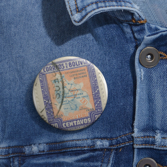 Frimärke ur Gösta Bodmans filatelistiska motivsamling, påbörjad 1950.Frimärke från Bolivia, 1945. Motiv av karta över Bolivias flyglinjer. "20-årsminne av flygbolaget "Lloyd Aéreo Bolivianos" grundande 1925-1945". Pin Buttons with Crisp Design