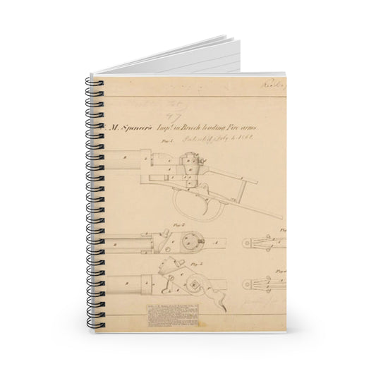 Patent Drawing of Engine - Drawing of Improvements in Breech Loading Fire Arms Public domain image Spiral Bound Ruled Notebook with Printed Cover