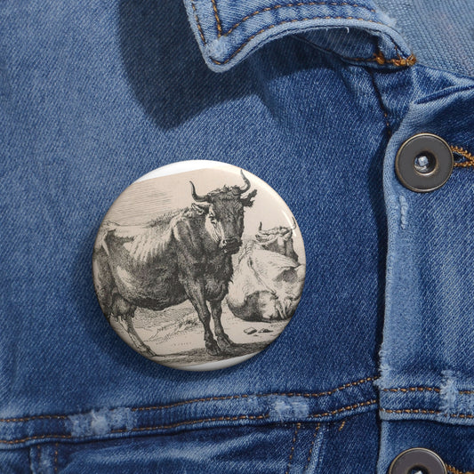 Series of various oxen and cows ('Het Bullenboekje'). Plate 2. A cow standing and another lying down. Pin Buttons with Crisp Design
