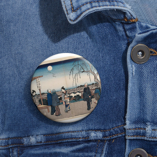 Shin Yoshiwara (Shin yoshiwara nihonzutsumi mikaeri yanagi), (Edo meisho) Pin Buttons with Crisp Design