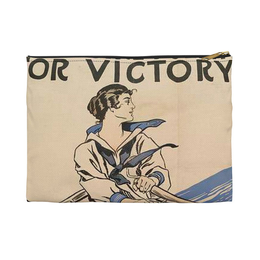 Every Girl Pulling for Victory, Victory Girls United War Work Campaign Large Organizer Pouch with Black Zipper