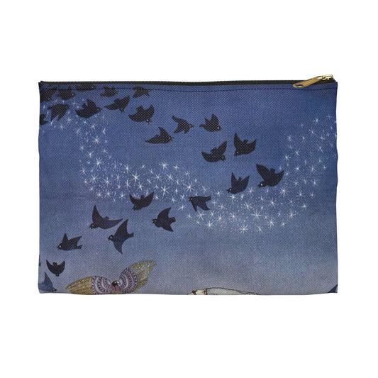 ‘No sooner had he whistled than he heard a whizzing and a whirring from all quarters, and such a large flock of birds swept down that they blackened all the field in which they settled’ (6278219321) Large Organizer Pouch with Black Zipper