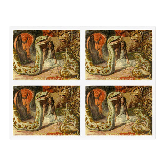 Lokis Gezücht - A painting of a woman sitting in front of a snake Laminated UV Protective Vinyl Stickers