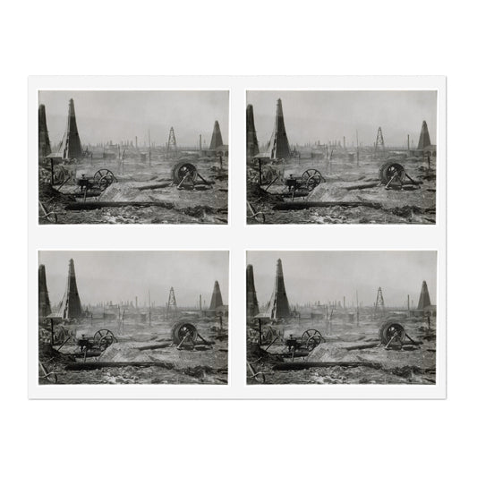 Baku. Oil production. - Drawing. Public domain image. Laminated UV Protective Vinyl Stickers
