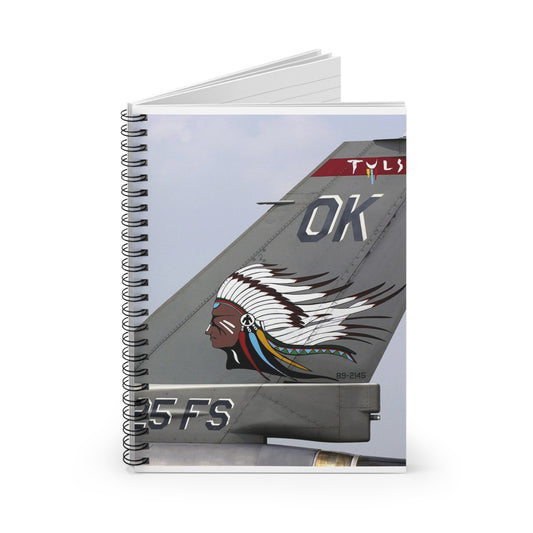The tail flash of a F-16 Fighting Falcon aircraft from the 125th Fighter Squadron (FS), 138th Fighter Wing (FW), Oklahoma (OK), Air National Guard (ANG) Spiral Bound Ruled Notebook with Printed Cover
