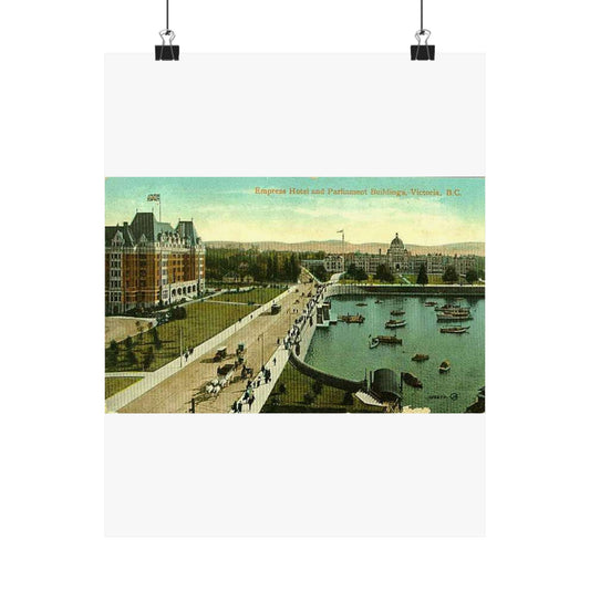 Empress Hotel and Parliament Buildings by the harbor in Victoria, British Columbia, between 1903 and 1913 (AL+CA 2080) High Quality Matte Wall Art Poster for Home, Office, Classroom
