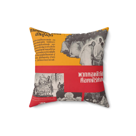Communist Threat to Religion - A red and yellow poster with pictures of people Decorative Accent Square Pillow