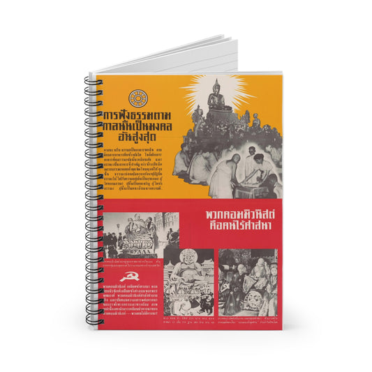 Communist Threat to Religion - A red and yellow poster with pictures of people Spiral Bound Ruled Notebook with Printed Cover